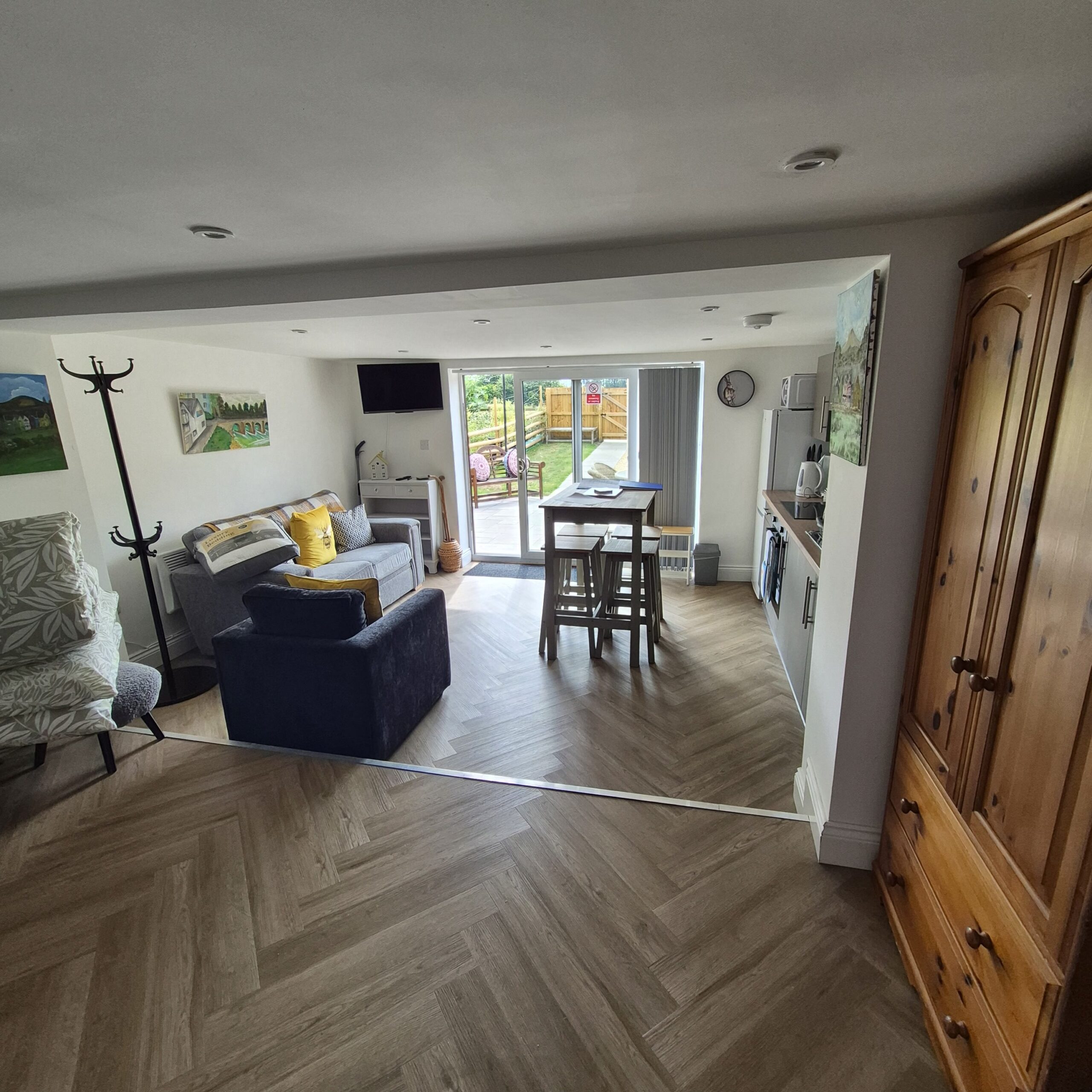 Cwtch on the Meadow sits beside the River Usk in the heart of Abergavenny, with sweeping views of the Blorenge and Castle Meadows. A cosy open-plan stay for up to four, it’s just a stroll from town, the castle, and local cafés — with the Brecon Beacons and vineyards close by for adventures.