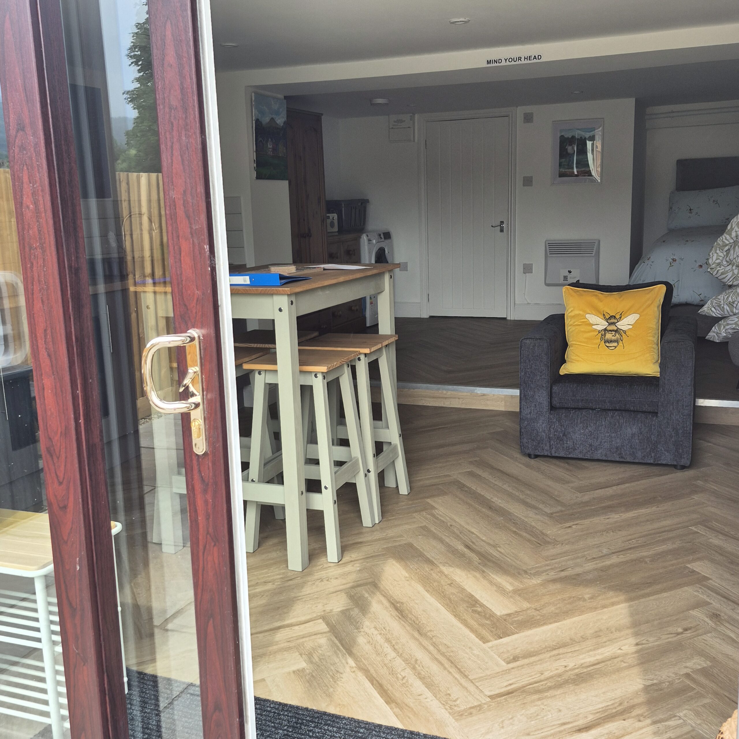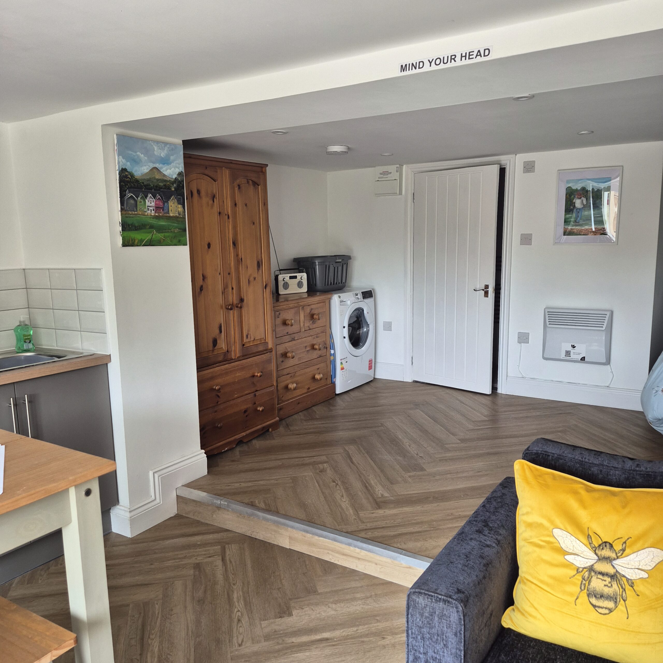 The Property accommodation is for 4 people and is open planned and consists of 1 Double Bed and a bed settee sleeping for 2 people with wardrobe and chest of drawers, Kitchen with Fridge, Table, utensils and a washing Machine also a bathroom which consists of a shower, heated Towel Rail. The property has WI-Fi and Free-View T.V.